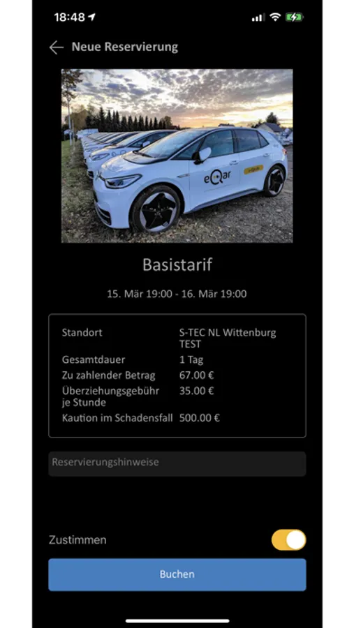 Ob als Stundenpaket, mehrere Tage oder Wochen am Stück – nach einmaliger Registrierung können Sie jederzeit mit Hilfe der eQar-App mit einem unserer umweltfreundlichen E-Autos losflitzen.