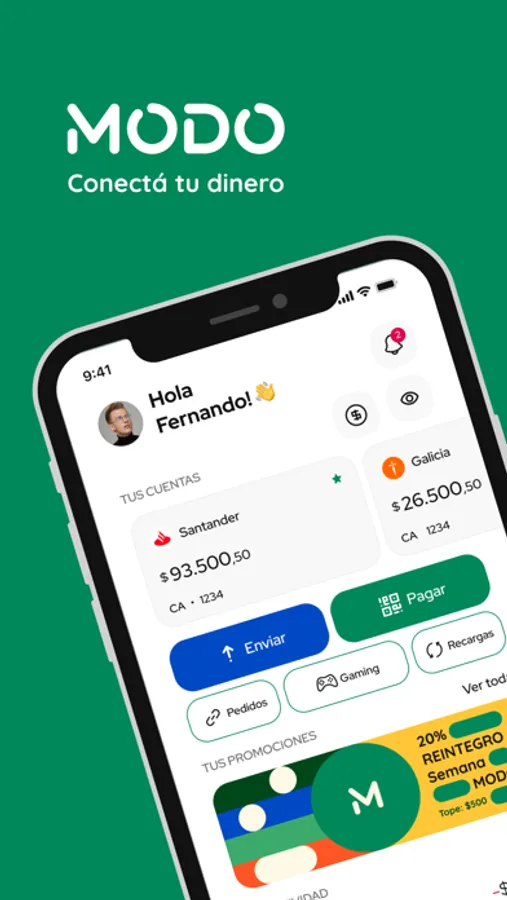 MODO es la billetera digital de los bancos con la que podés enviar y pedir dinero a tus contactos, sin usar CBU o alias. Además, podés pagar en comercios con QR, aprovechando grandes beneficios y promociones.