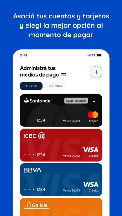 - Acceder a todas tus cuentas y tarjetas de crédito, débito y prepagas desde un solo lugar.
