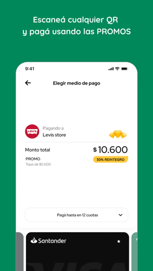 - Pagar con QR en comercios sin presentar tarjetas ni DNI. Además, podés acceder a todas las promociones y descuentos que te ofrecen tus bancos.