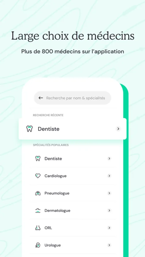 - Facilitate the search for your doctor according to his specialty, his name or his region
