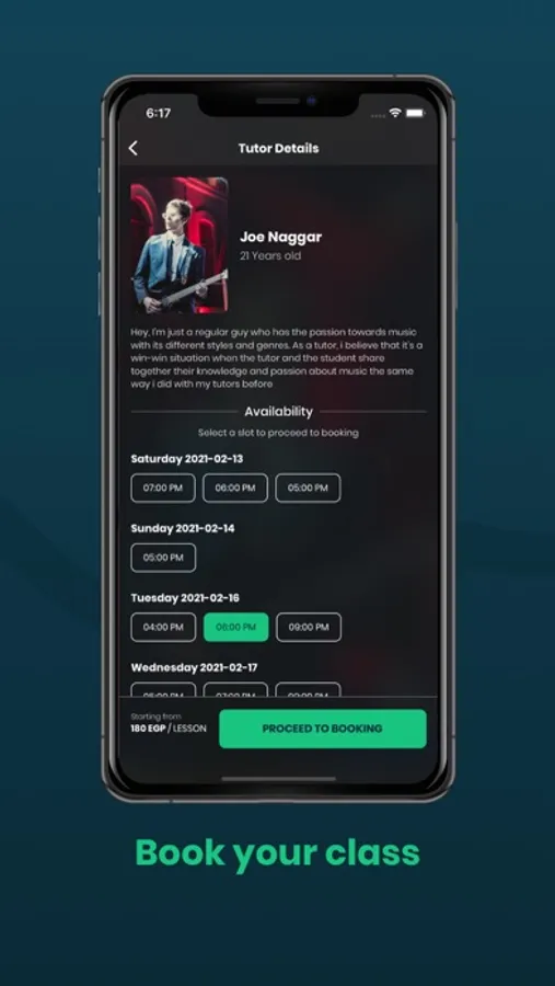 - You can choose the musician you wish to book with along with your preferred slot and the subscription method.