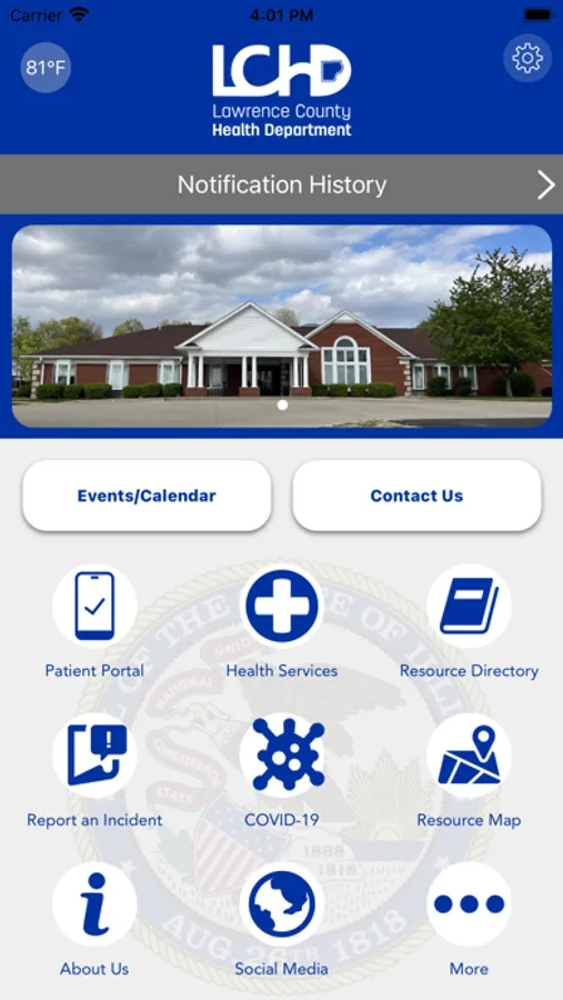 The Lawrence County Health Department, IL mobile application is an interactive app developed to help improve communication with area residents. The LCHD App allows residents to access important alerts, health services, report an incident, view resource maps, as well as providing the community with the latest public health news and information.