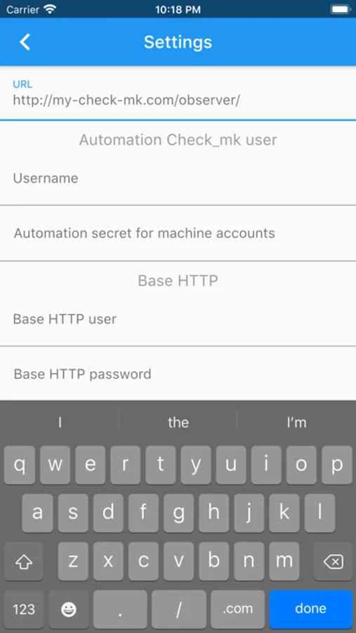 2. In the application settings, specify the your Check_MK-server url and API account.