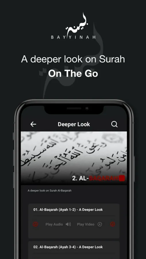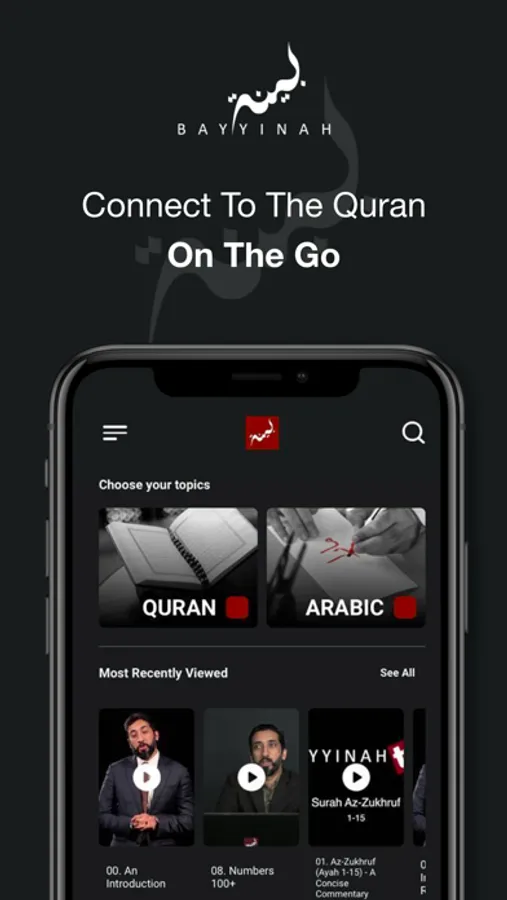 Bayyinah BTV mobile app brings you instant access to all the content available on our Bayyinah BTV website and much more. Wherever you are, you can access all the episodes you'll need on your learning journey with the Quran. Whether you want to start with our tried and true Arabic curriculum, explore a Concise Commentary on each and every surah of the Quran or take a Deeper Look into the miraculous words of Allah, you will have everything at your fingertips.