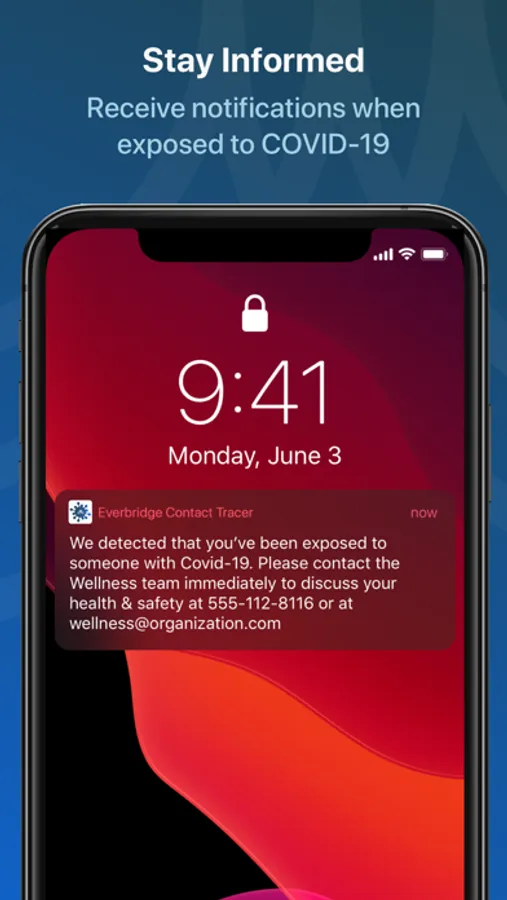 Use of the app and participation is completely voluntary. No personal identifying information is ever exchanged between people using the Everbridge Mobile app. Only COVID-19 data that could endanger your health is shared with (public) health officials. Your information will never be shared with any other 3rd party.