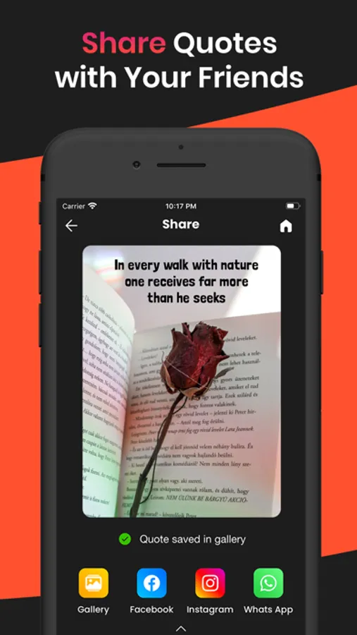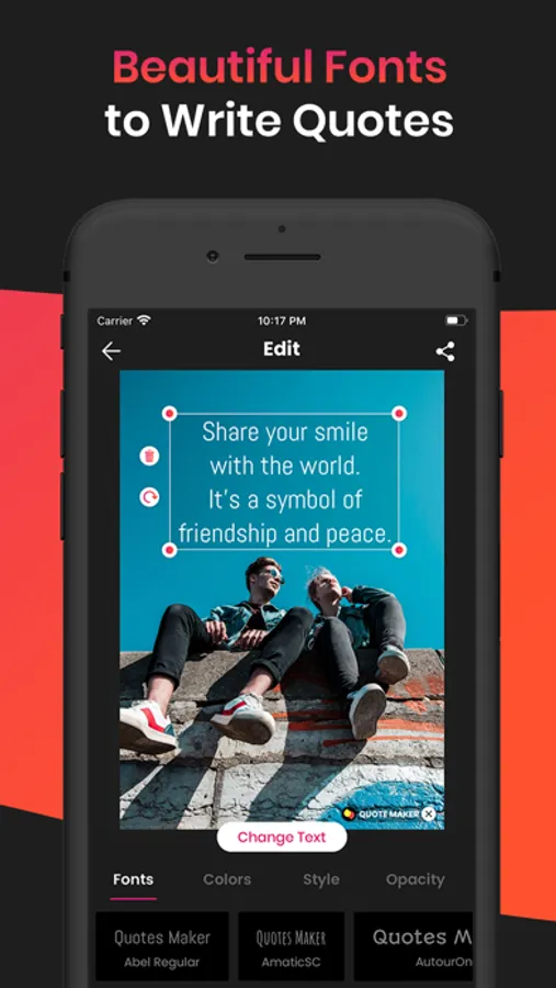 You can use our backgrounds or upload your own backgrounds from the gallery or files then add any of your quote text on the photo. Don't have quotes in your mind? No problem, we also provide unlimited quotes from which you can use to make insta text and photo text. After that, you can customize and add author to that photo and it's done and ready to share it on social media and make other calls you a best post maker.