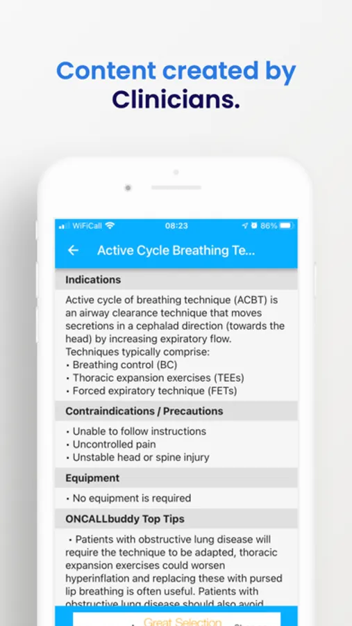 ONCALLbuddy is an app for physiotherapists and other healthcare professionals working in respiratory settings.