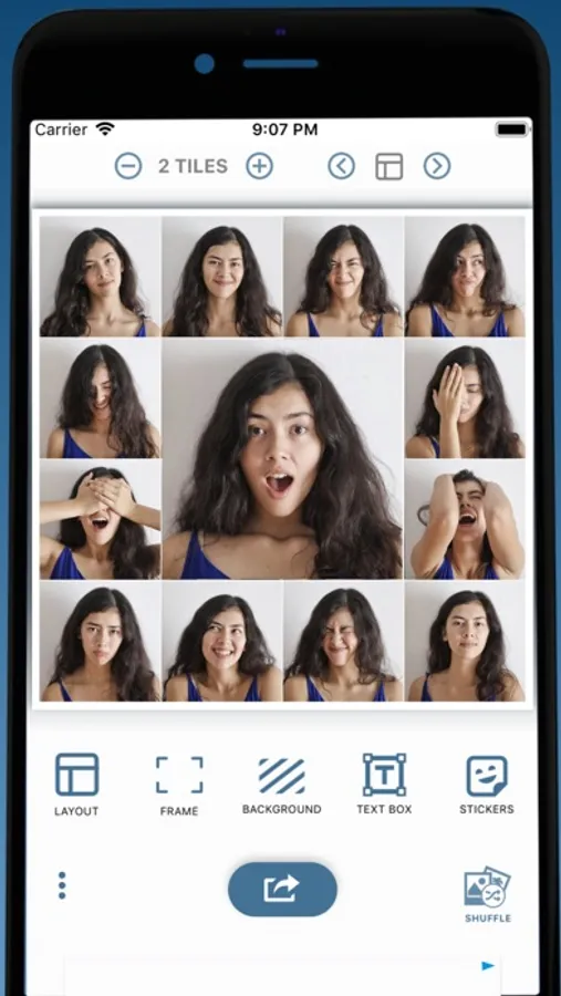 - Shuffle photo collage tiles in a click to create new photo collage instantly