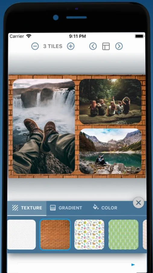 - Customize collage background with textures, gradients or color