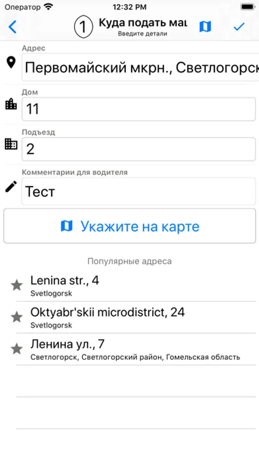 - In the mobile application you can specify the address where you need to go by finding it on the map.