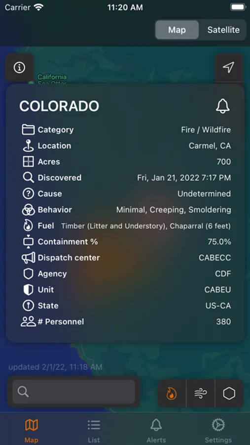 Firespot subscribers can activate Alerts to receive notifications on important fire-related events. Set one or multiple areas to monitor, and Firespot will pop an alert on your phone when an important change happens.