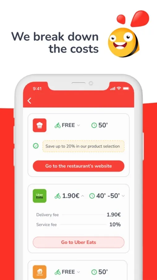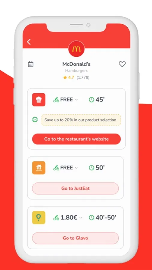 We compare among all food delivery platforms available in your city such as Deliveroo, JustEat, Glovo and UberEats.