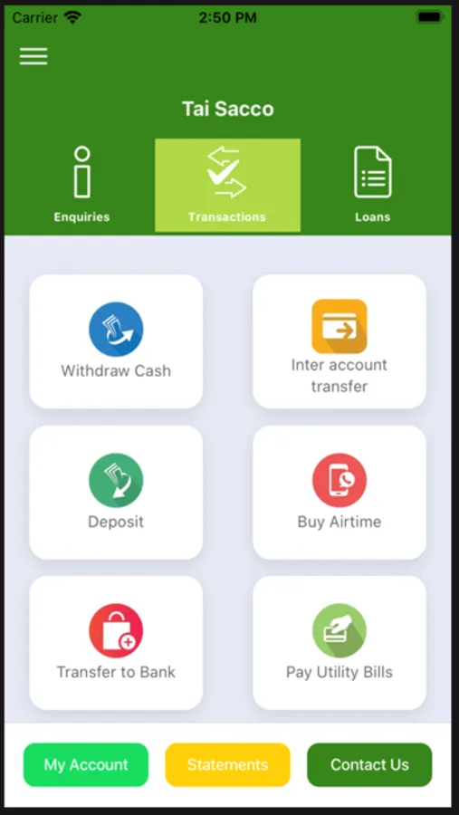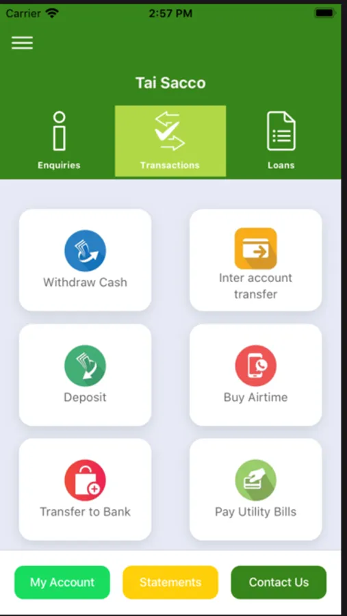 A financial application used a SACCO institution. Features involved include but not limited to Withdrawal to Members account, Deposit to Sacco account, Airtime purchase, Utility purchase(DSTV, GoTv). Security features include OTP messages. The application is a seamless application with great UI.