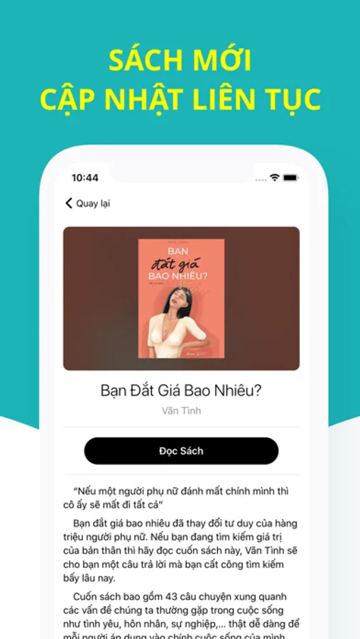 - Nâng cao trải nghiệm đọc sách với các chức năng : Thay đổi font chữ, hỗ trợ chế độ đọc ban ngày và đêm, bookmark, phụ lục…