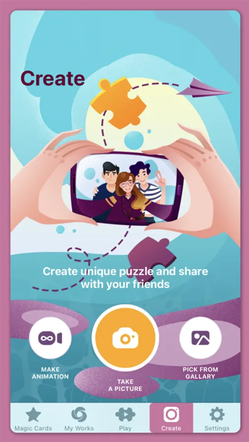 - CREATE SELFIE PUZZLE with your own picture art work and share with friends