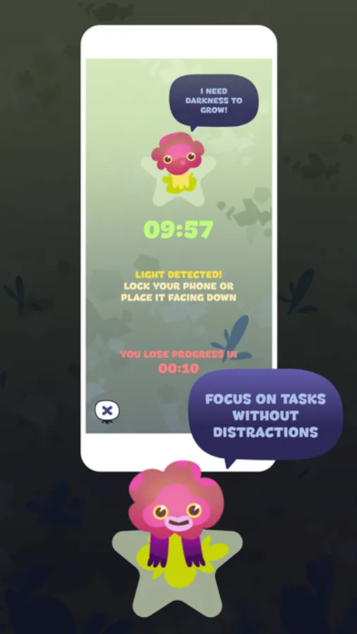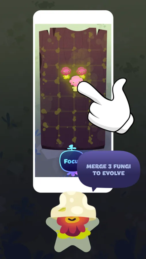If you need to put down your phone and focus on what’s important in your life, you can plant the cutest fungus in your garden. The more you focus, the more cute fungi sprawl in your garden!