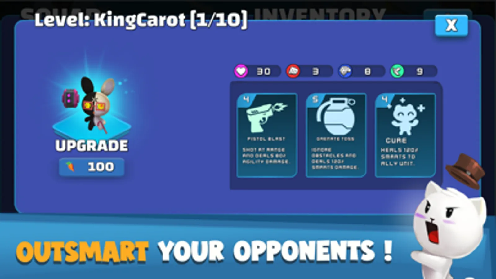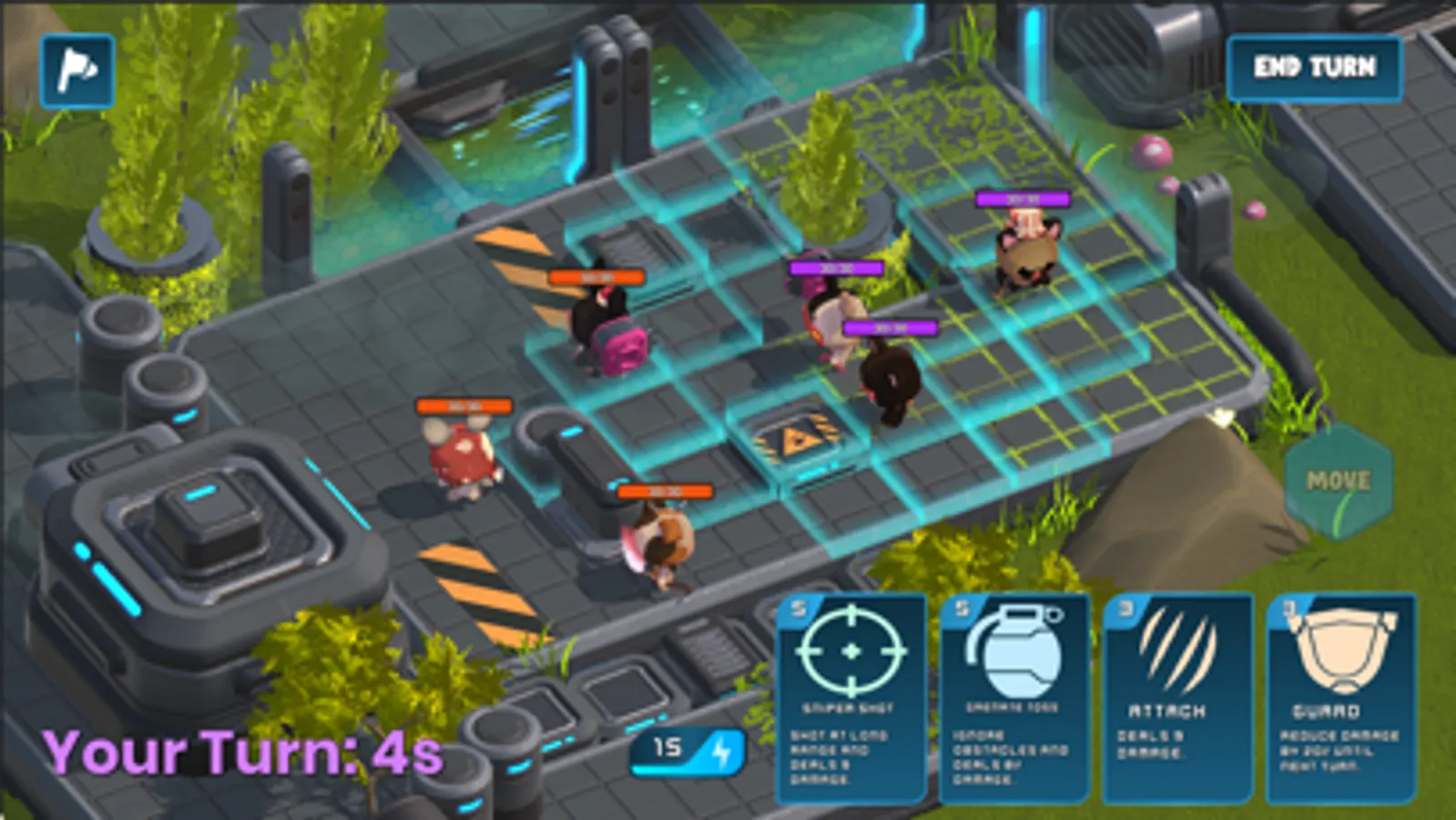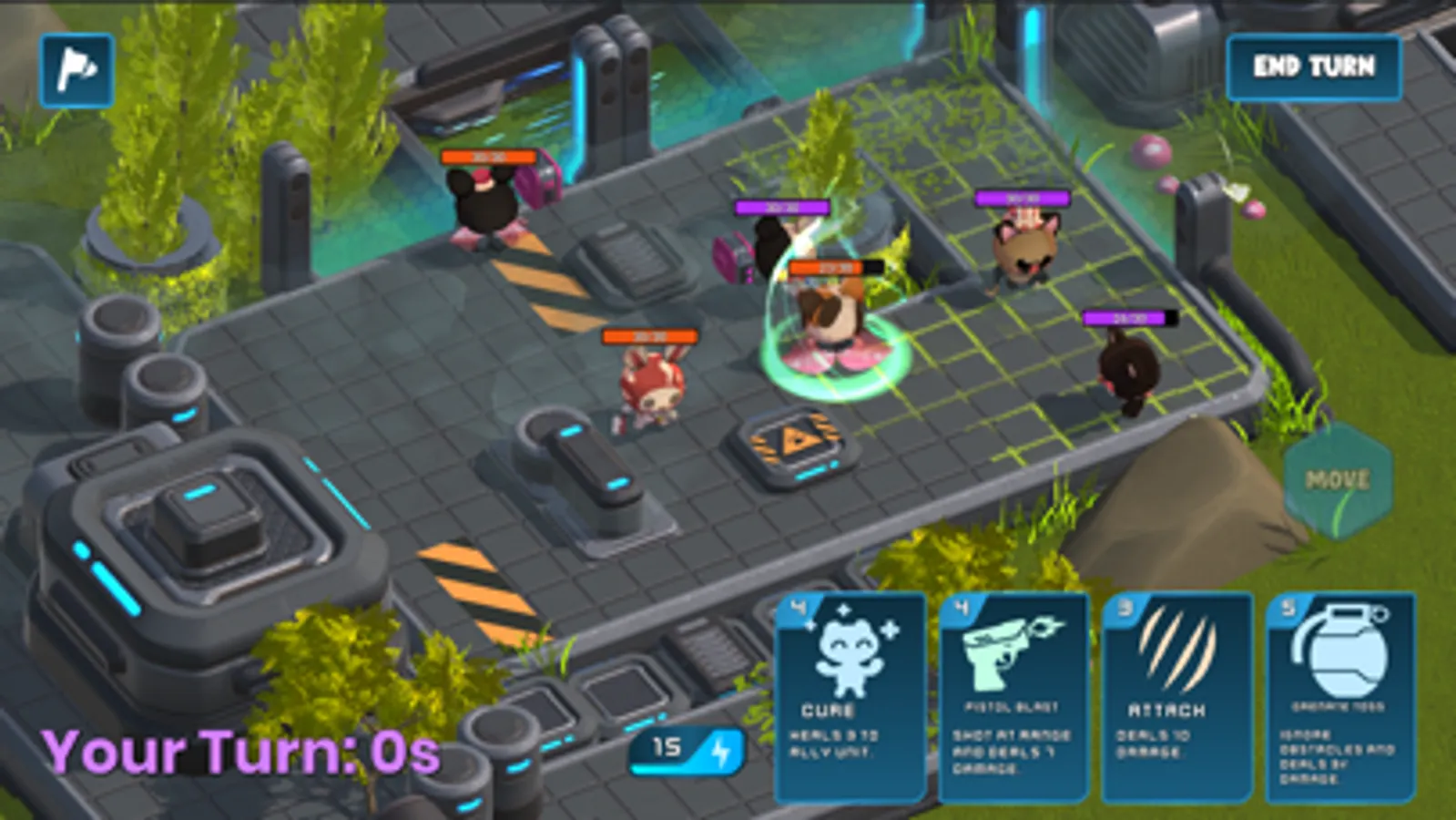 Choose between adorable animals to join your squad! Each character have unique skill-cards that can be played at any time to change the flow of the game.