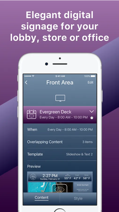 Want to show off your marketing on your biggest digital platform with the ease of setting up and managing your content right from your phone, anywhere in the world?