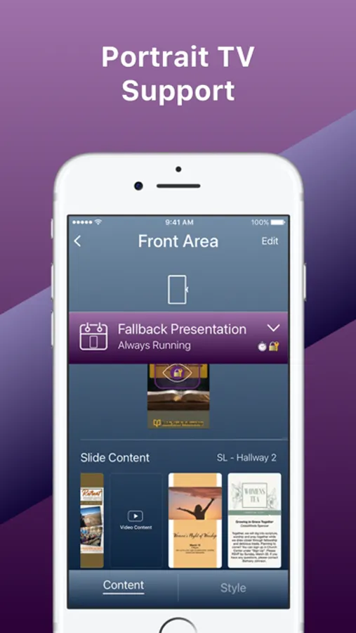 Pick from multiple templates to display your images, social media and weather and schedule different presentations for different times of the day or week.