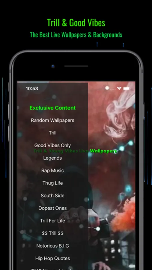 - App offers large number of Live Backgrounds as well as AMOLED Live Wallpapers organised across different Categories : Notorious BIG, Tupac Shakur, The Marathon Nip, and over 2000 amazing hard Wallpapers
