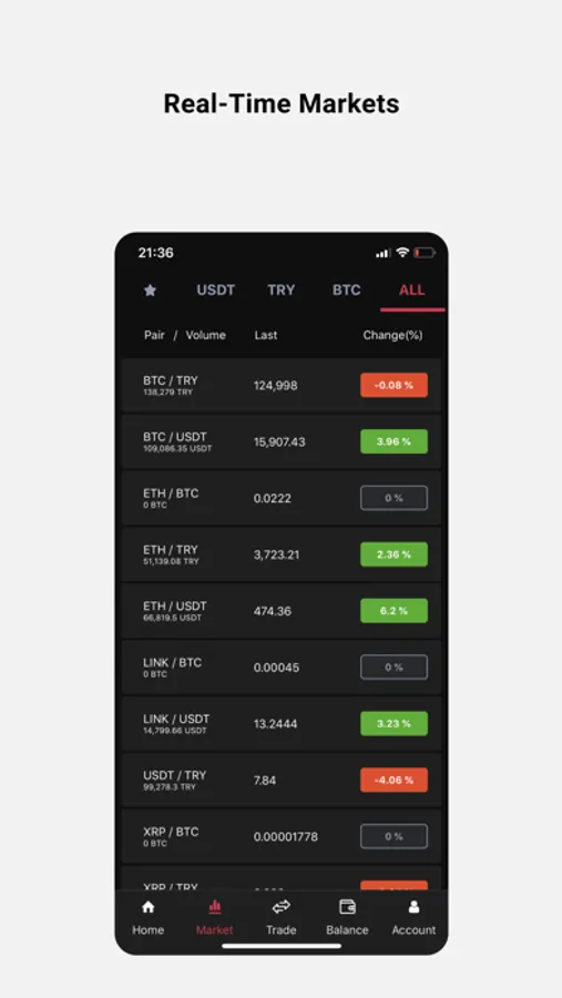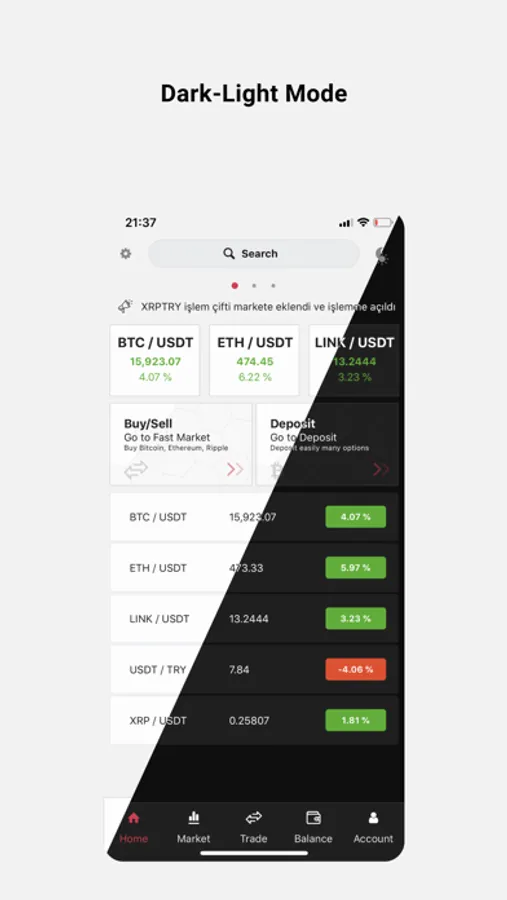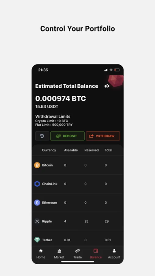 - Trade; buy and sell Bitcoin, Ethereum, Ripple, Chainlik, and Tether