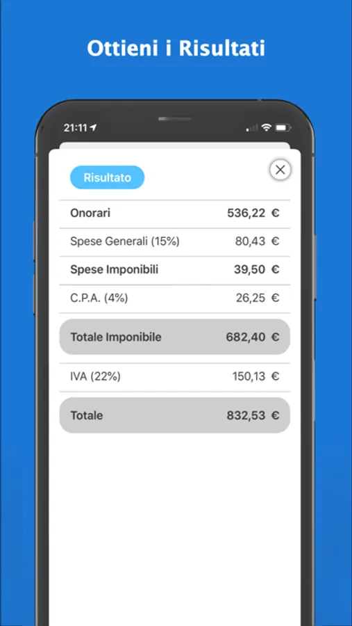 Do you want your invoice as soon as possibile? Just use inLegal! Fill inthe necessary data and you will receive an immediate result. We apply the 15% of legal fees, VAT, if necessary, and the social welfare quota.