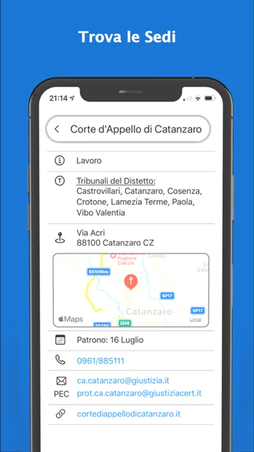 Do you need to know exactly where the Courthouse is located in a specific city, or in which days the patron saint of Turin is celebrated? inLegal provides a full range of information on all the Italian Courts of Appeal. This utility will be soon expanded with infos on Tribunals, J.P. and so on!