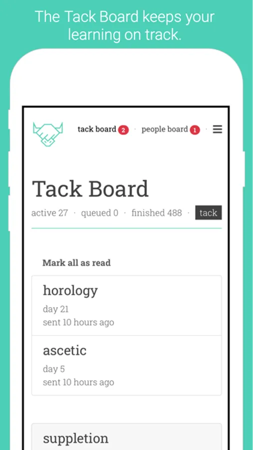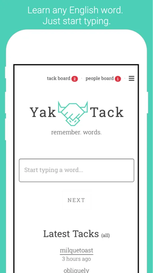 We've made it easy for you to connect with people on Yak Tack who are learning new words too. When they start tacking a new word, we'll tell you about it. They'll be your campfire friend.