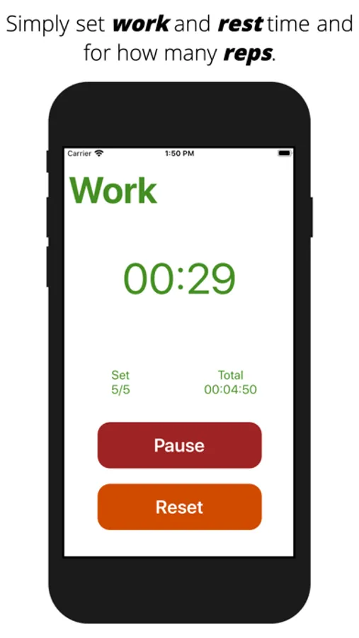 It allows the user to set how long they want to work for, rest for, and the number of times they want it to repeat. After filling out the text fields the app will then run for the desired amount of reps all whilst informing the user what state the app is currently in. Either "Work" or "Rest".