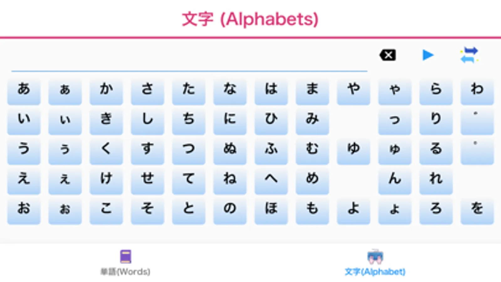 User can type both in hiragana and katakana alphabet and the app will translate those characters into JSL.