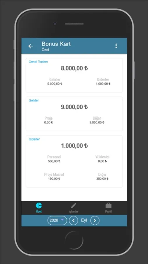 Uygulama içerisindeki Tüm gelir ve giderleriniz kasa hesaplarından yapılacağından bütçenizi her zaman kontrol altında tutarsınız.