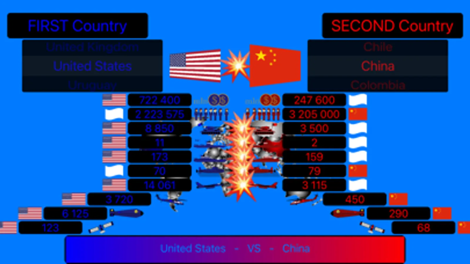 'Military Power' app bases on the most recent information and materials in the greatest world library - Wikipedia (wikipedia.com), UN statistics and World Bank statistics.