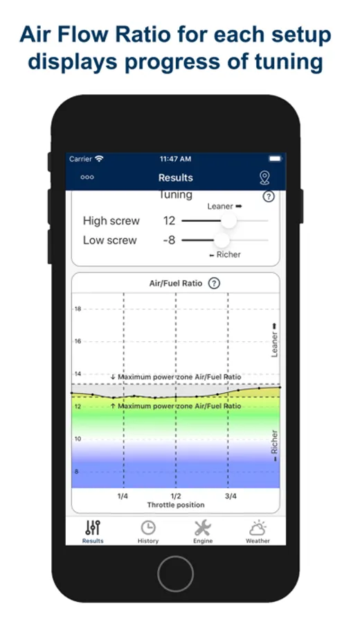 • Graphic display of fuel mix quality (Air/Flow Ratio or Lambda)