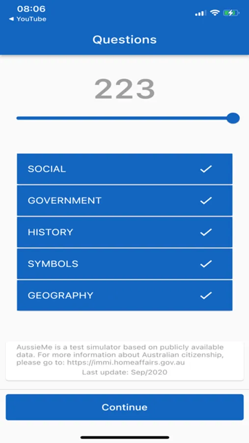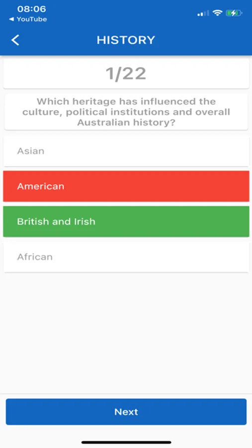 AussieMe will help you! It provides a list of questions and answers based on publicly available data about Australian history and customs. It also provides results statistics to improve your test performance.