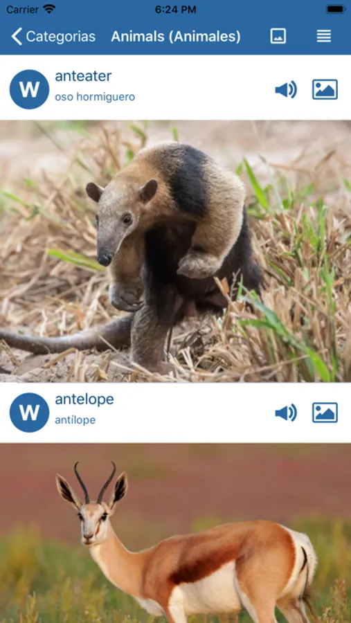 This is a good application to learn English words. You can see pictures linked to words, hear the English pronunciation and memorize them. You see the original and translated words.