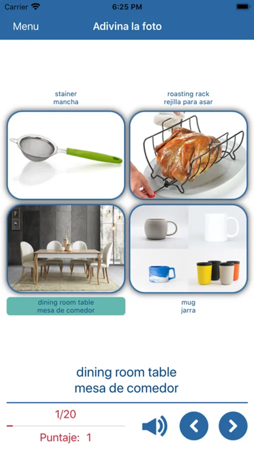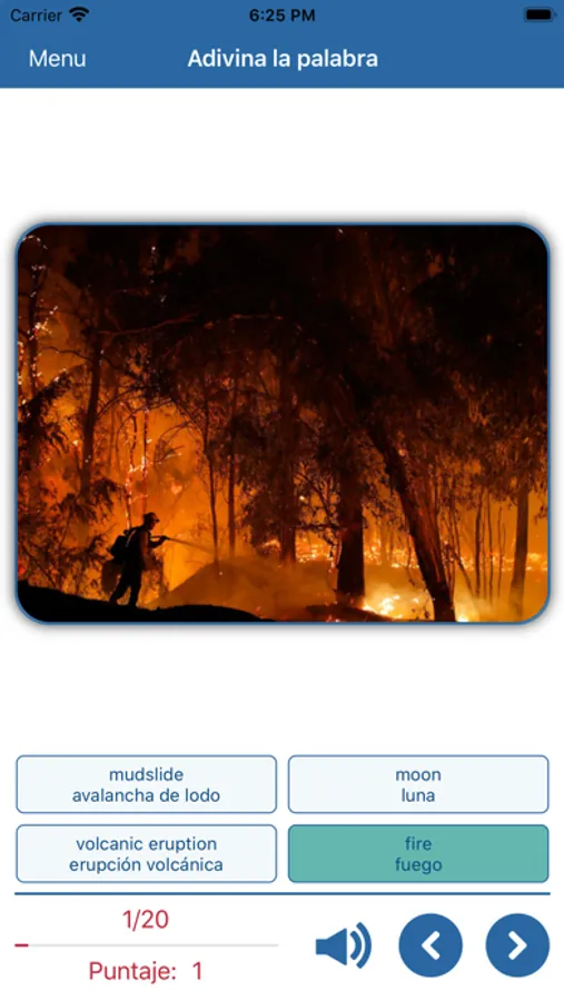 You can listen to the English word pronunciation after answering by tapping the audio icon.