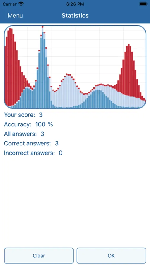 You can see the statistics. Information includes the overall score, accuracy, count of correct and incorrect answers.