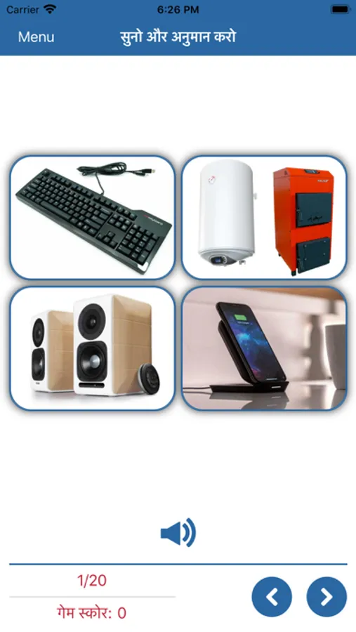 You can listen to the English word pronunciation after answering by tapping the audio icon.
