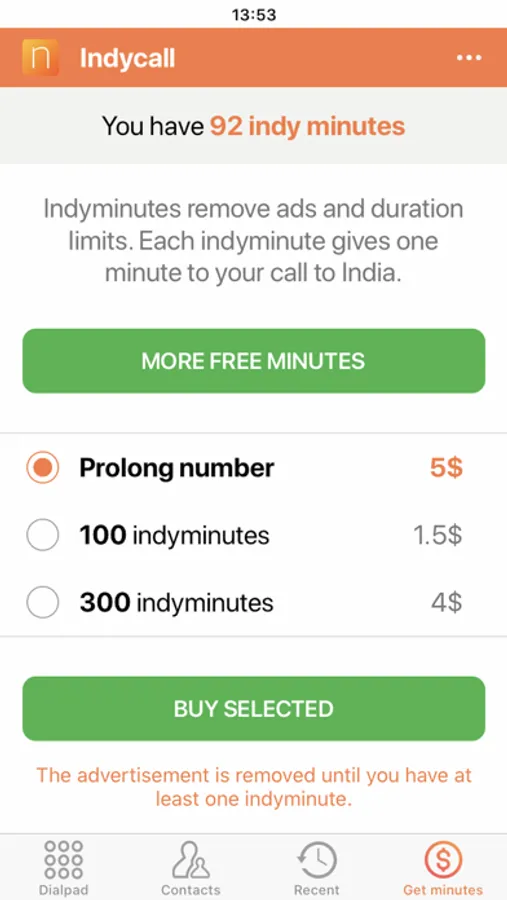 - You can get more free minutes, tap on "more free minutes" button in the Get minutes tab, to check the options.