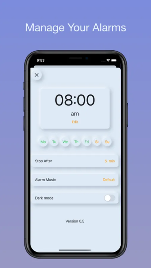 Set the main sleep cycle alarm by long pressing button on the main page, before you sleep. Don't worry, the algorithm recognizes your sleep duration.