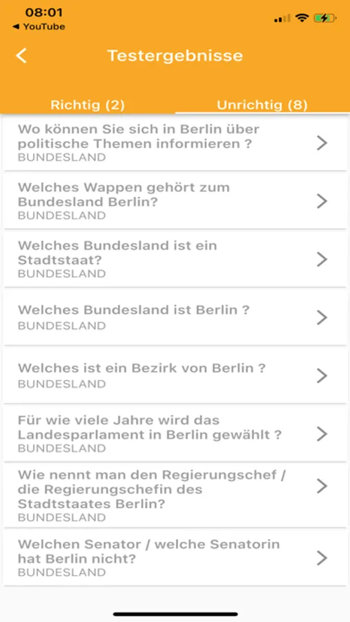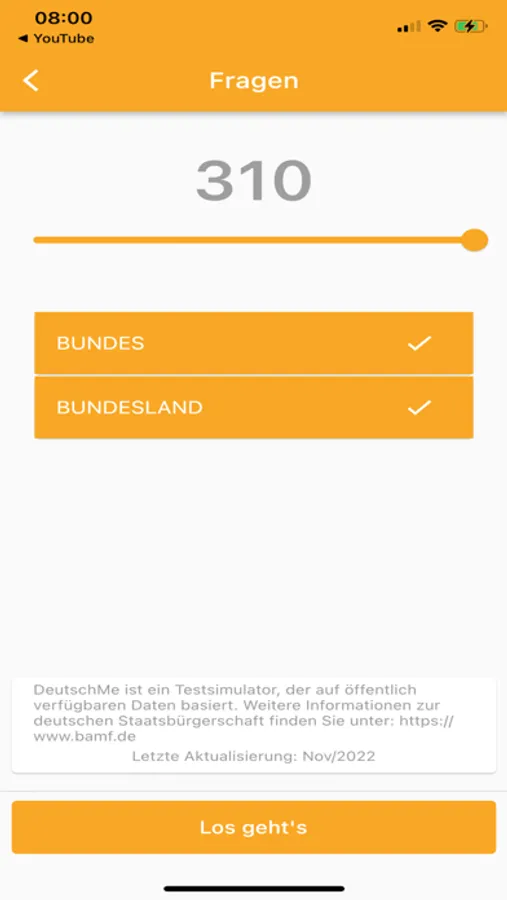 DeutschMe will help you! It provides a list of questions and answers based on publicly available data about German history and customs. It also provides State level questions and results statistics to improve your test performance.