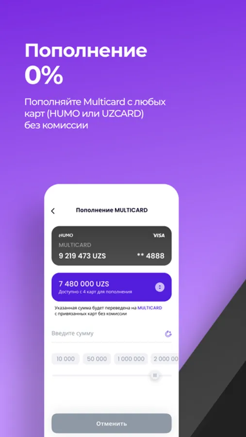 - Переводы с карты Multicard на Humo - бесплатно, а на Uzcard всего лишь по 0.3%;