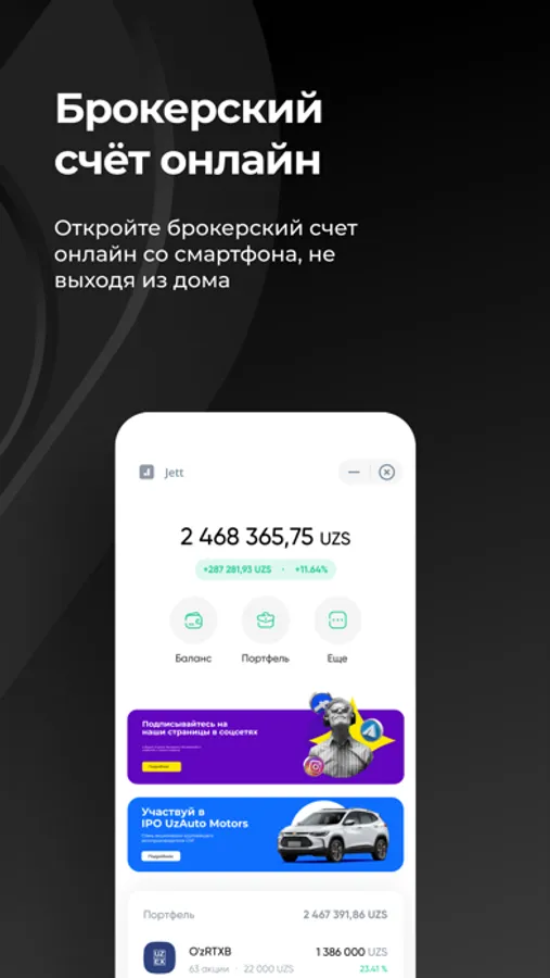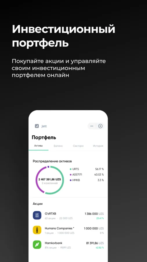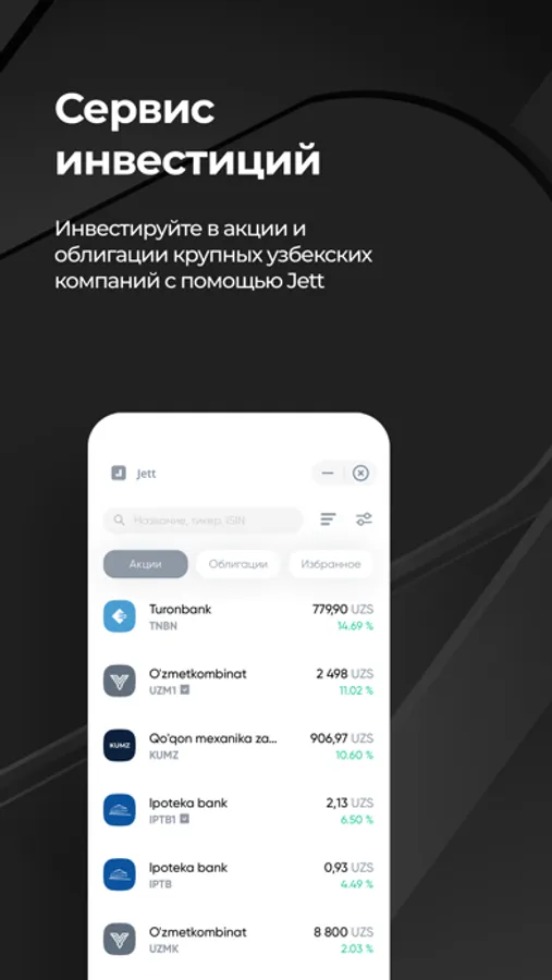 Инвестируйте в акций местных компаний и участвуйте в IPO на фондовой бирже "Тошкент" через сервис инвестиций Jett.