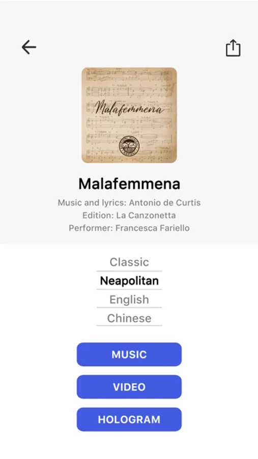 La mission del progetto è quella di individuare nuove modalità digitali e interattive di promozione e fruizione internazionale del patrimonio culturale, artistico e musicale partenopeo. Si tratta di un repertorio di canzoni napoletane, tra le più famose al mondo, tradotte in inglese e cinese, oltre che nella versione originale.
