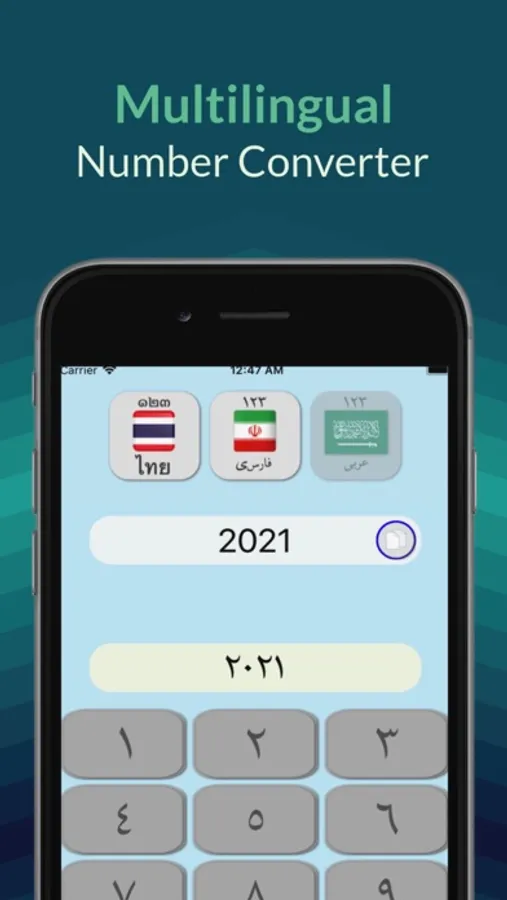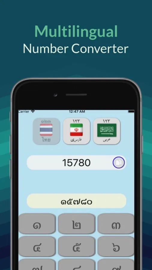 This application has been developed for everyone who is regularly interacting with foreigners, especially with a text based based communication style. Many translators are performing their jobs very satisfactorily but they are not translating (converting) numbers existing in different alphabets. As the developers, we always needed such a tool when we are writing letters, emails or sending messages to our thai, arabic and persian customers or partners. Just enter your number, copy and paste the converted number wherever you want!