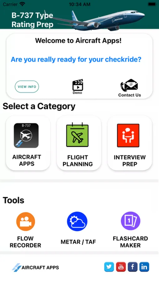 STEP 2: After B737 Type Rating Prep has downloaded to your device, tap the Aircraft Apps button on the home screen.