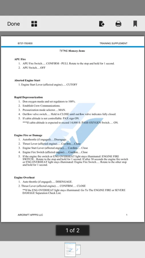 •Study all aircraft memory items in the easy to use PDF reader that allows you to print, email and customize your learning experience.