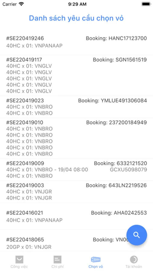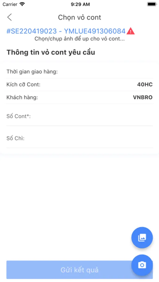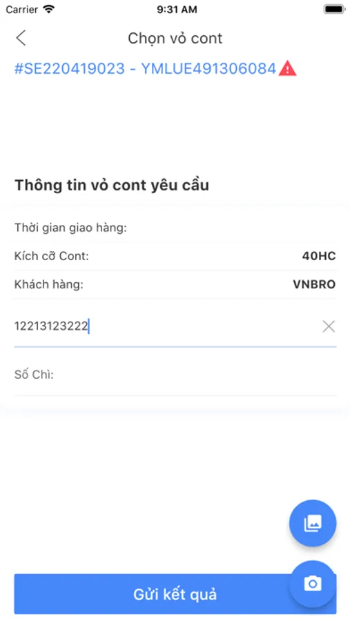 - Hoàn thành các công việc được giao hàng bằng cách scan các mã QR trước khi gửi trạng thái vỏ container về trung tâm