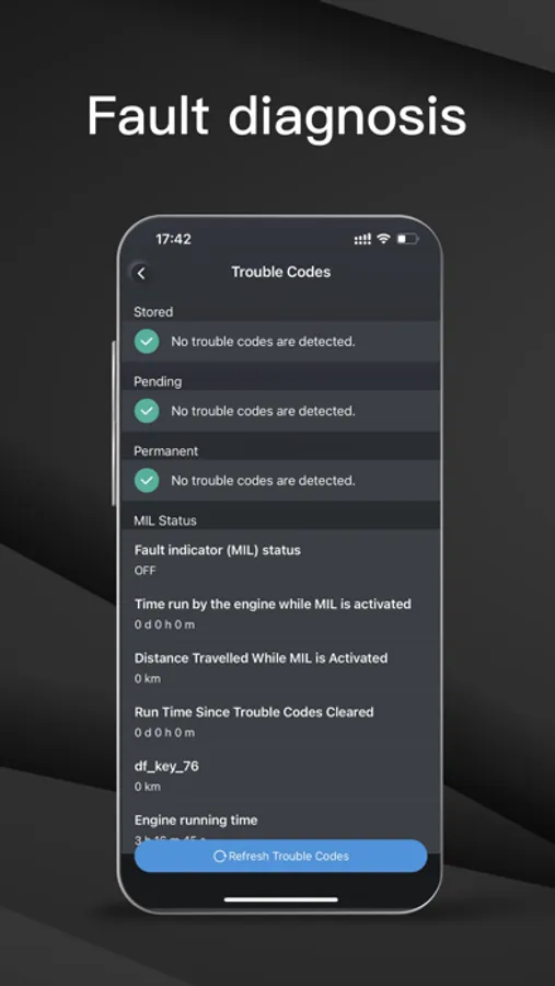 OBD Home is a car diagnostic and monitoring application,support English,Español,Русский,Deutsch,Français,日本語,中文. Through iPhone and iPad, use Bluetooth/WiFi to communicate with the vehicle terminal to complete fault diagnosis and driving assistance functions. It has automobile detection and analysis functions such as fault code reading and clearing, instrument panel, performance test, and travel analysis. It also supports high-speed data transmission and has the advantages of low power consumption and ultra-power saving.